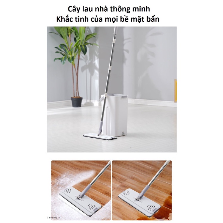 Cây lau nhà tự vắt thông minh xoay 360 độ -luồn sâu mọi ngóc nghách kèm 2 bông lau