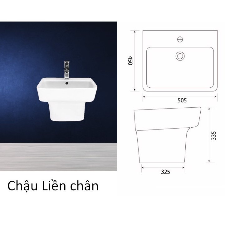Lavabo chậu liền chân, liền khối vuông cao cấp men trắng