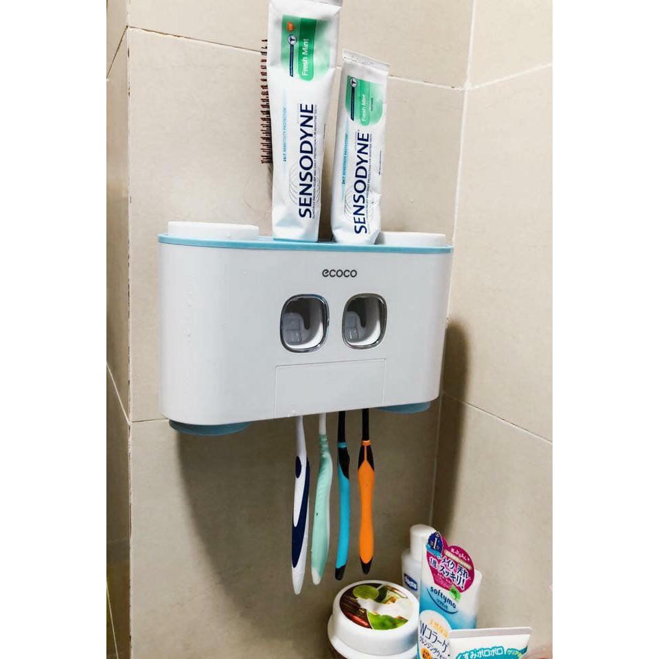 Bộ lấy kem đánh răng ECOCO kèm 4 ly nhựa - bộ dụng cụ nhả kem đánh răng tự động dán tường