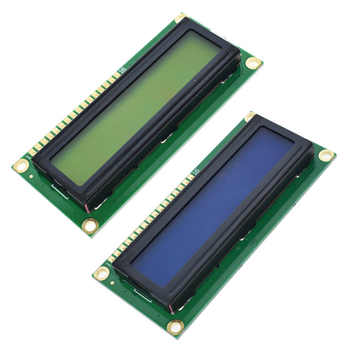- Màn hình text LCD1602 xanh lá sử dụng driver HD44780, có khả năng hiển thị 2 dòng với mỗi dòng 16 ký tự, màn hình có độ bền cao, rất phổ biến, nhiều code mẫu và dễ sử dụng thích hợp cho những người mới học và làm dự án.