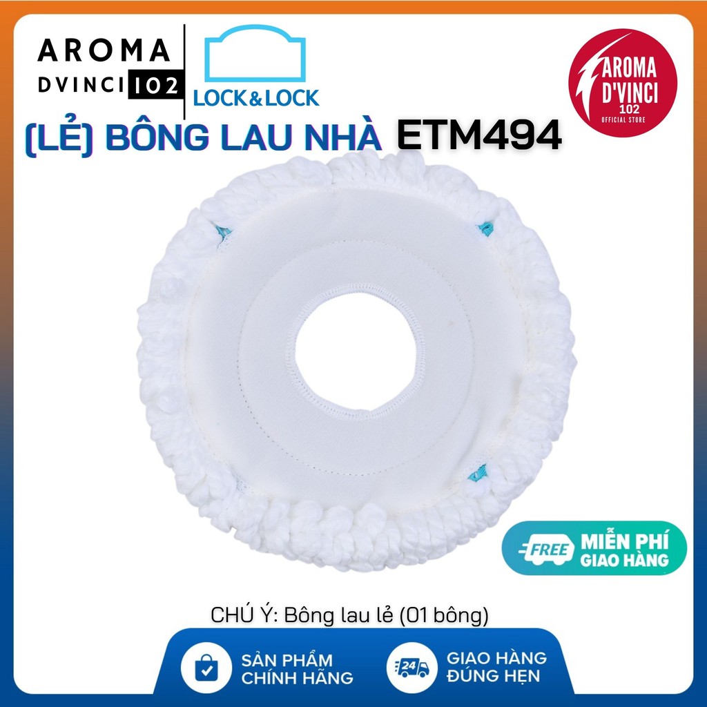 [Lẻ] Bông Lau Nhà LOCK&LOCK ETM494 (Corner Spin Mop ETM494) - 01 Bông- Dùng để thay thế khi đầu lau của cây lau nhà bị hư mà không cần phải mua cả cây lau nhà để tiết kiệm chi phí. Bông lau đầu tròn, được làm từ chất liệu cao cấp, mềm mại, có độ thấm hút tốt, có khả năng bám mọi bụi bẩn, cho sàn nhà sạch nhanh chóng.