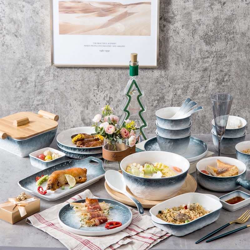 Nhà cửa & Đời sống > Bộ đồ bàn ăn > Dĩa || (Lẻ món)Bát đĩa sứ cao cấp Vân Đá Thạch Ghi xám , bát đĩa tô phong cách Bắc Âu, Đĩa sứ beaf steak ( bít Tết) sang trọngCòn hàng