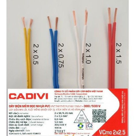 Giới thiệu [Bán lẻ theo mét] Dây điện đôi mềm Cadivi 2x0,5mm ,2x0,75mm, 2x1mm,2X1.5mm