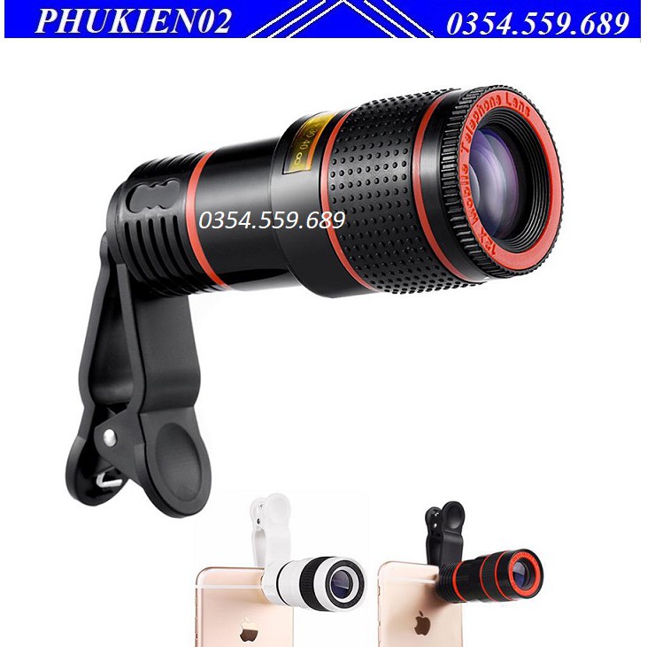 - Bao gồm: 1 kẹp, 3 ống lens zoom 8X