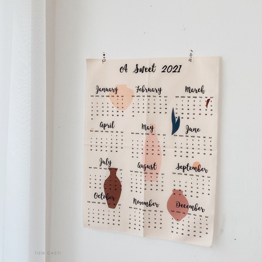 Lịch treo tường 2021 của Tiệm Casti được làm từ vải Canvas chắc chắn, tiện lợi, bạn có thể dễ dàng theo dõi ngày tháng mà không phải lật hoặc xé từng tờ một. Ngoài ra, lịch Canvas Tiệm Casti có thể được dùng để decor, thêu thùa trang trí hoặc dành làm quà tặng rất thích hợp.Sản phẩm có xuất sứ tại Việt Nam và chất lượng tốt. Sau khi hết thời gian sử dụng, bạn có thể tái chế thành chiếc túi vải hoặc lót ly, cốc rất dễ thương.