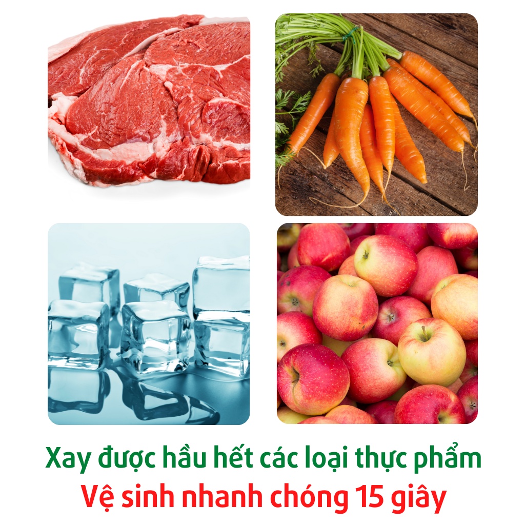 - Xay được hầu hết các loại thực phẩm: thịt, cá, rau củ, trái cây, các loại hạt, hành tỏi,…xay cháo, đồ ăn dặm cho bé