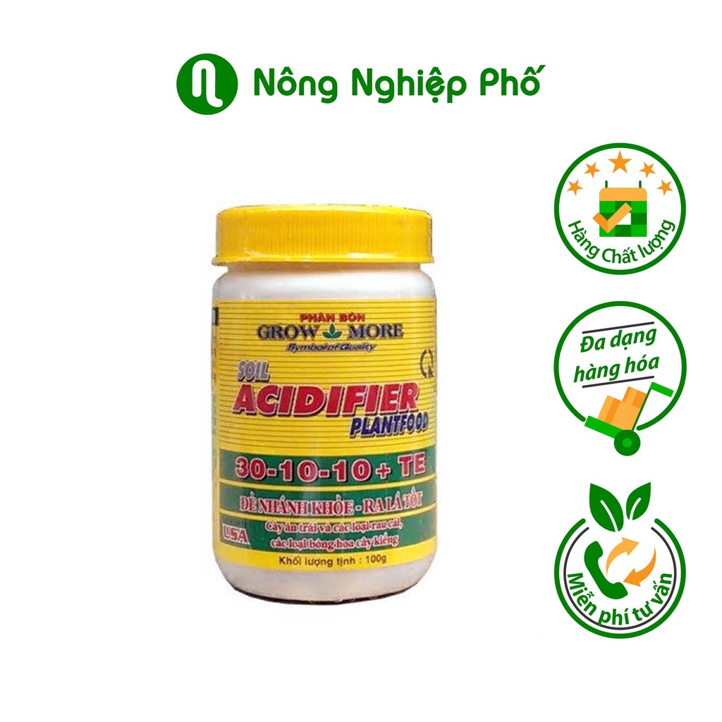 Nhà cửa & Đời sống > Làm vườn > Phân bón || LỌ 100 GRAM - PHÂN BÓN LÁ GROWMORE SOIL ACIDIFIER 30-10-10+TECòn hàng