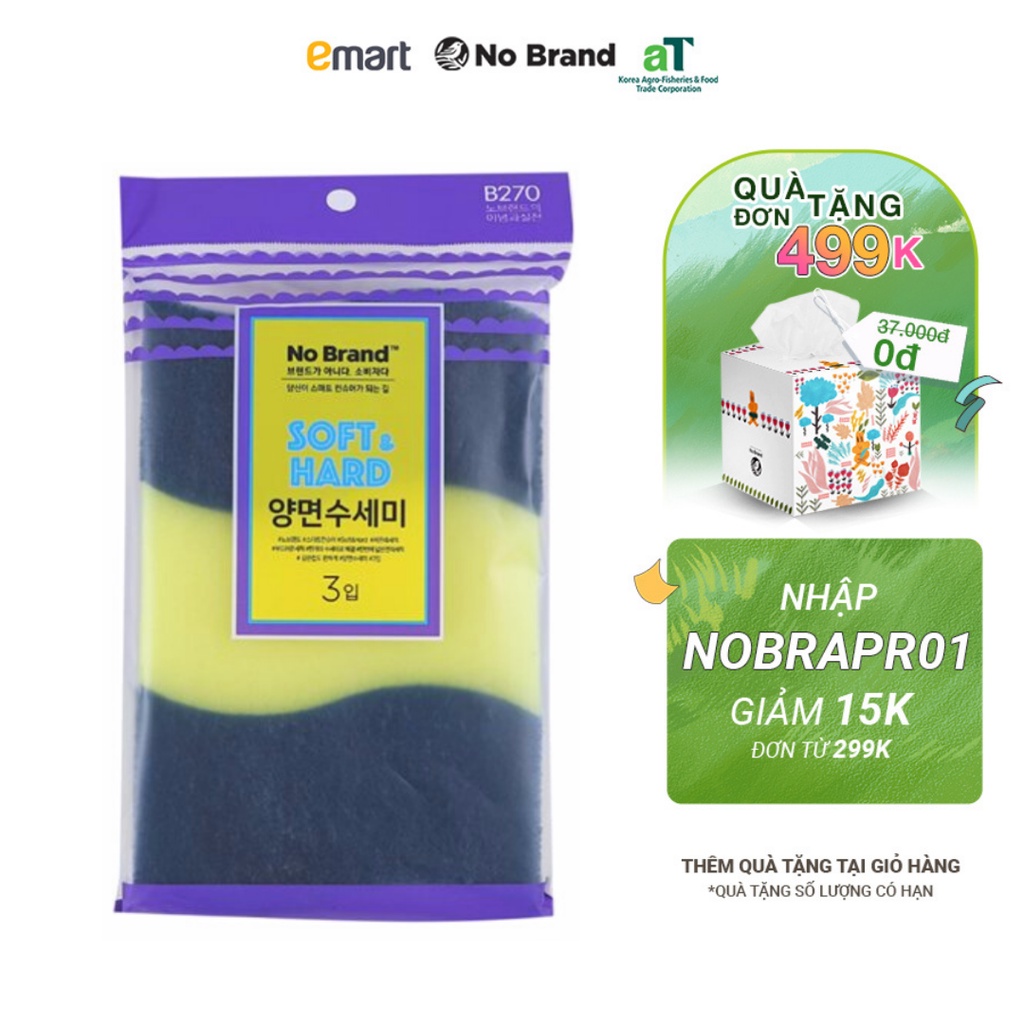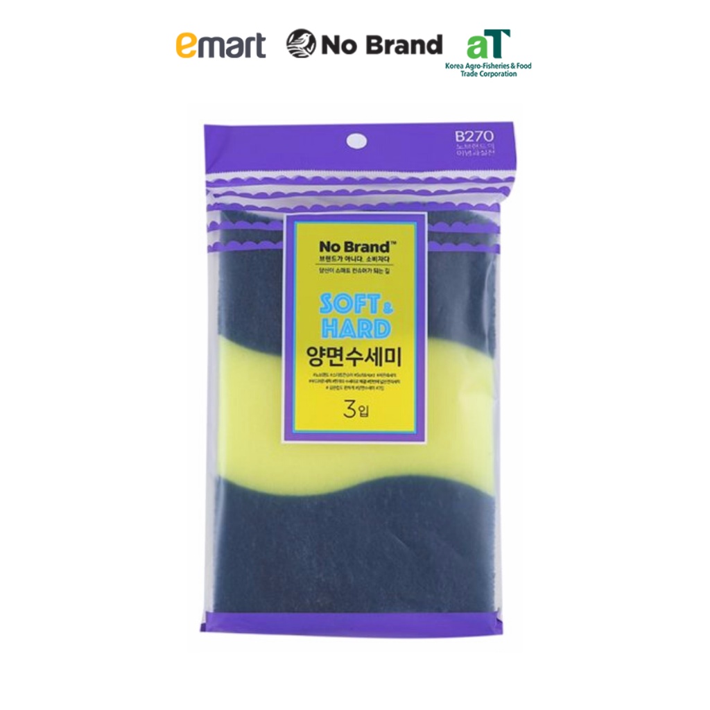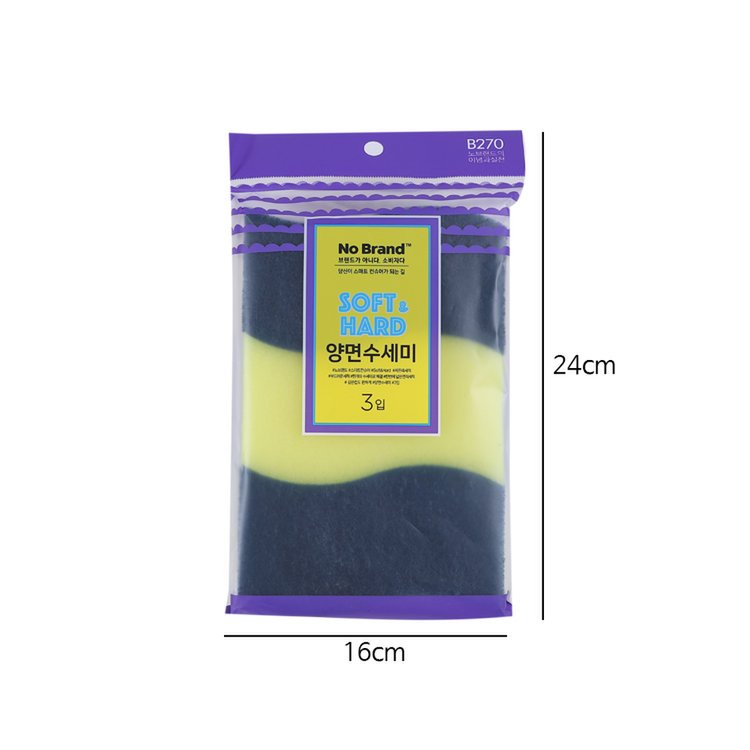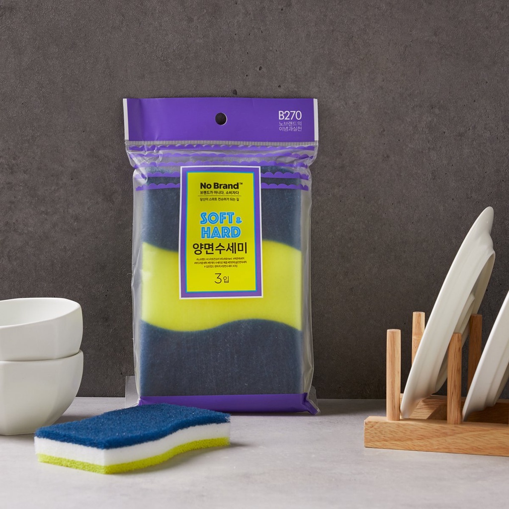 🧽 LÔ 3 MIẾNG RỬA CHÉN 2 MẶT NO BRAND노브랜드 소프트앤하드 양면수세미 3매