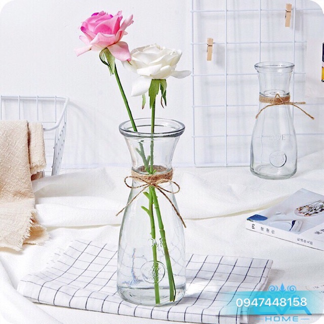 Lọ cắm hoa dáng THẮT EO thủy tinh trang trí cực xinh - Tặng kèm phụ kiện trang trí