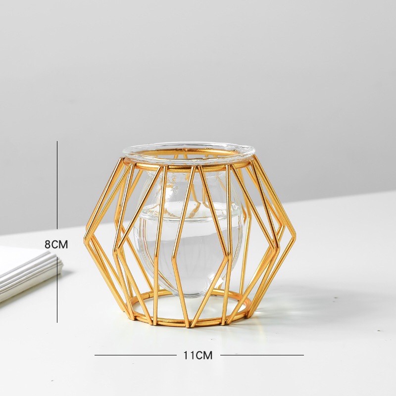 - Lọ hoa thủy tinh có thiết kế hiện đại với giá đỡ kim loại đơn giản nhưng cuốn hút, trưng bày những bông hoa của bạn trong 1 ống nghiệm hình trụ và giá đỡ hình học được thiết kế đẹp mắt.- Giá đỡ kim loại hình học màu vàng kim hoặc vàng hồng có thể kết hợp hoàn hảo với nhiều điểm nhấn trang trí khác nhau, là phụ kiện trang trí đẹp mắt cho nhà bếp, phòng khách, văn phòng, nhà hàng, phòng ăn, bàn tiệc cưới trung tâm.