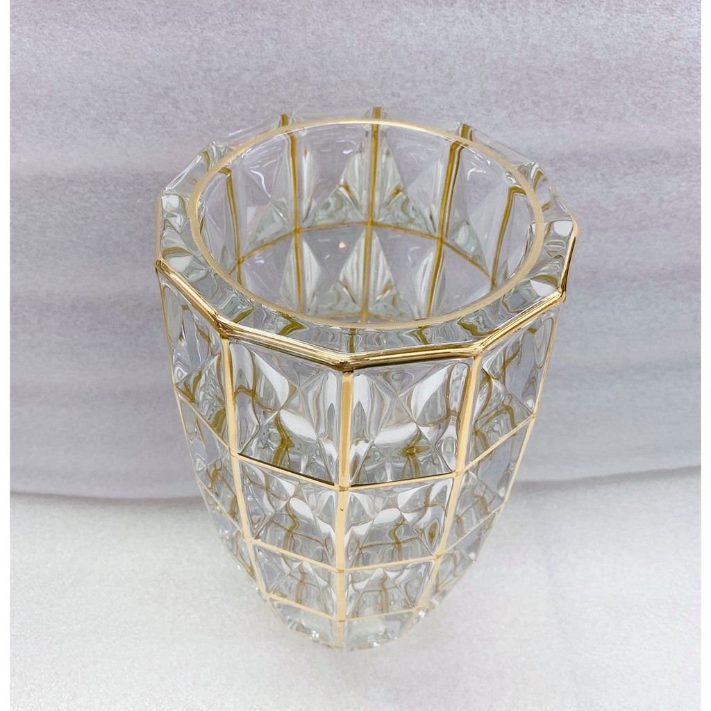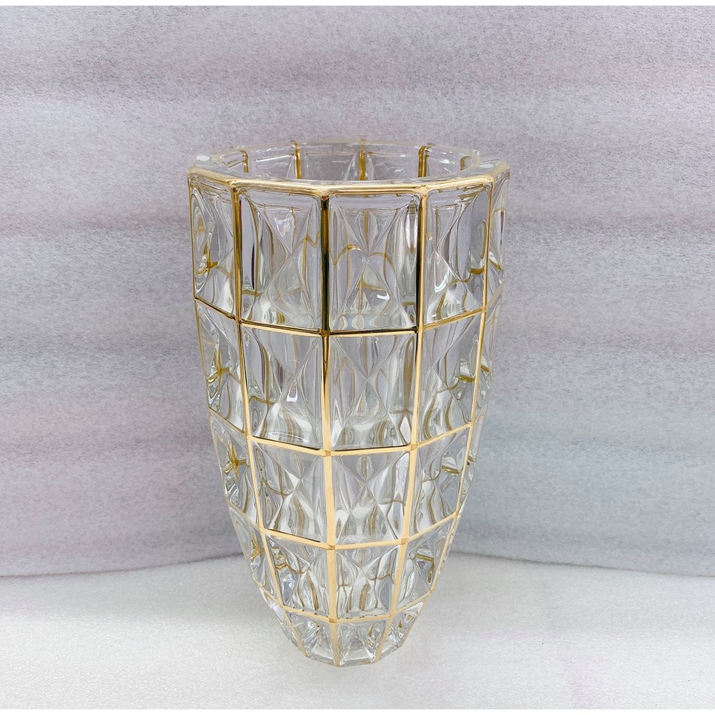 Lọ cắm hoa thủy tinh cao cấp viền vàng mắt vuông 30cm
