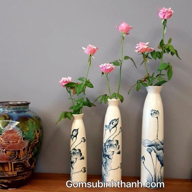 Set gồm 3 lọ rạn vẽ hoa senLọ to cao 48cm rộng 10cm