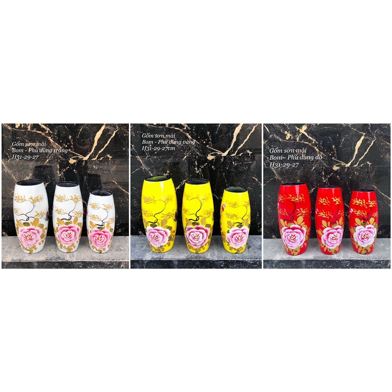 Giới thiệu Lọ hoa bình hoa gốm sứ sơn mài - Bát Tràng - Dáng bom