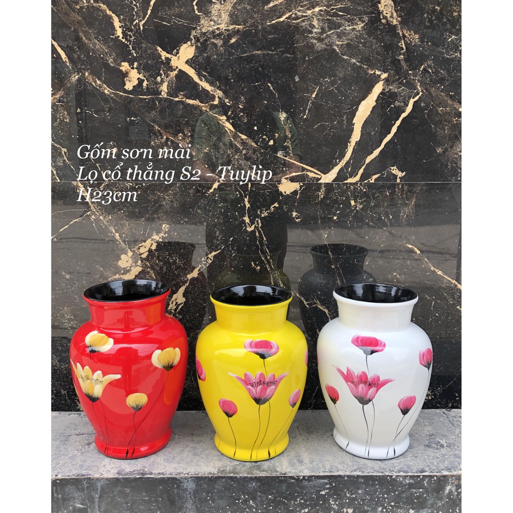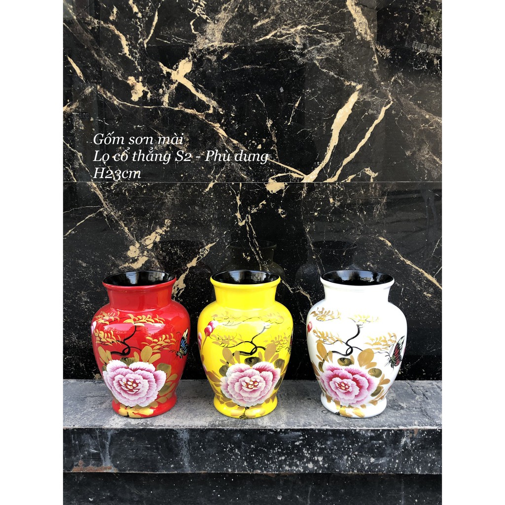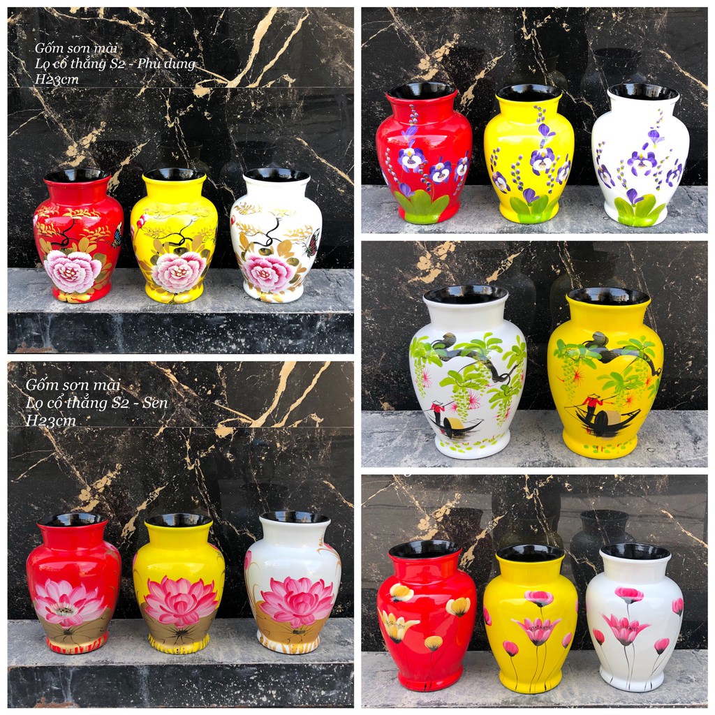 Lọ hoa cổ thẳng cao 23cm hàng sơn mài gốm sứ chuẩn Bát Tràng