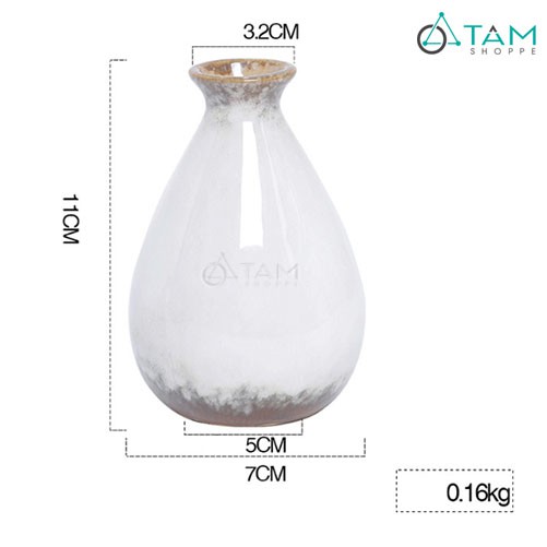 + Đường kính: 7cm, Miệng lọ đường kính: 3.2cm - Cao: 11cm - Quy cách đóng gói: Hộp giấy 12x12x15cm - Nặng: 160gr