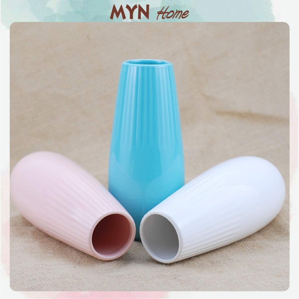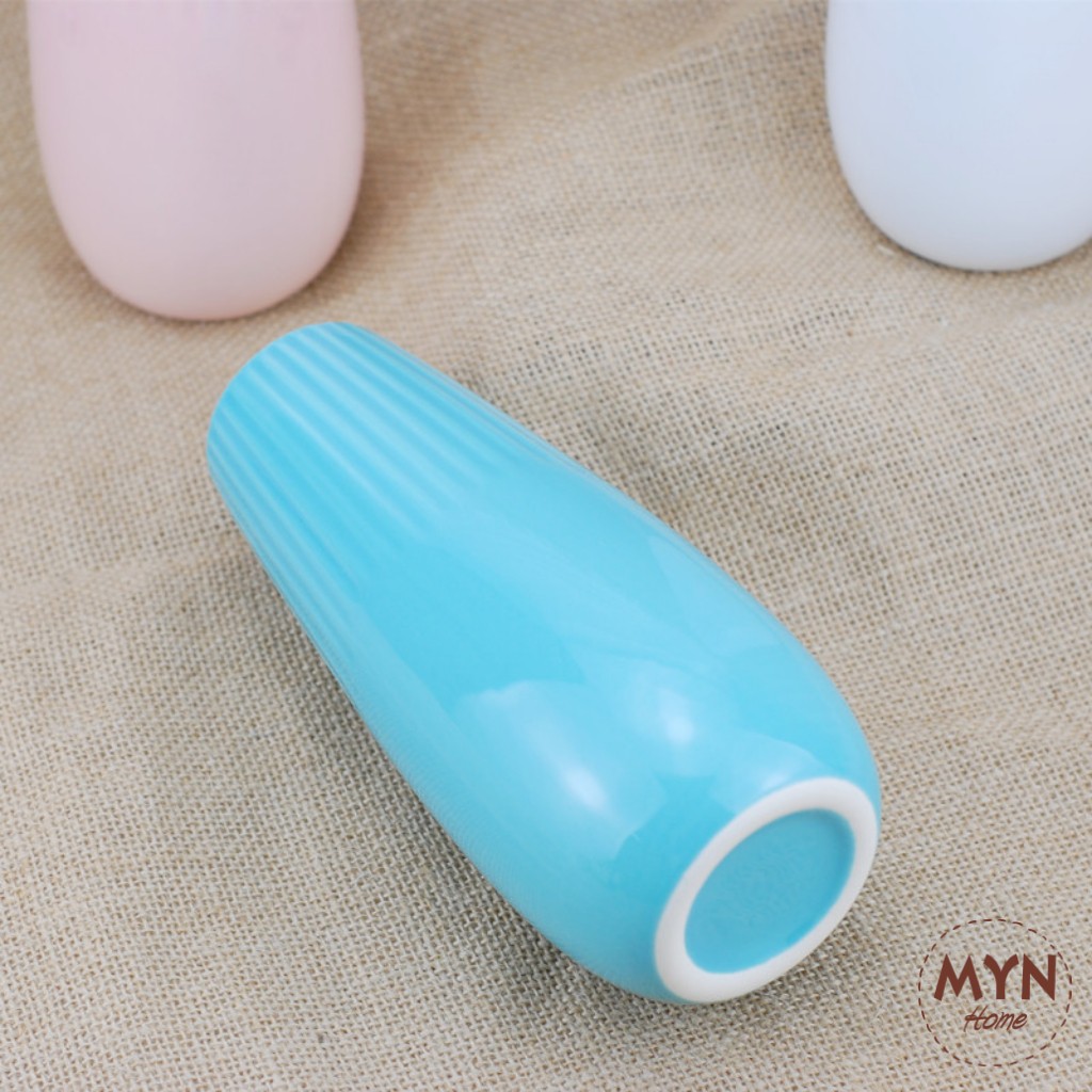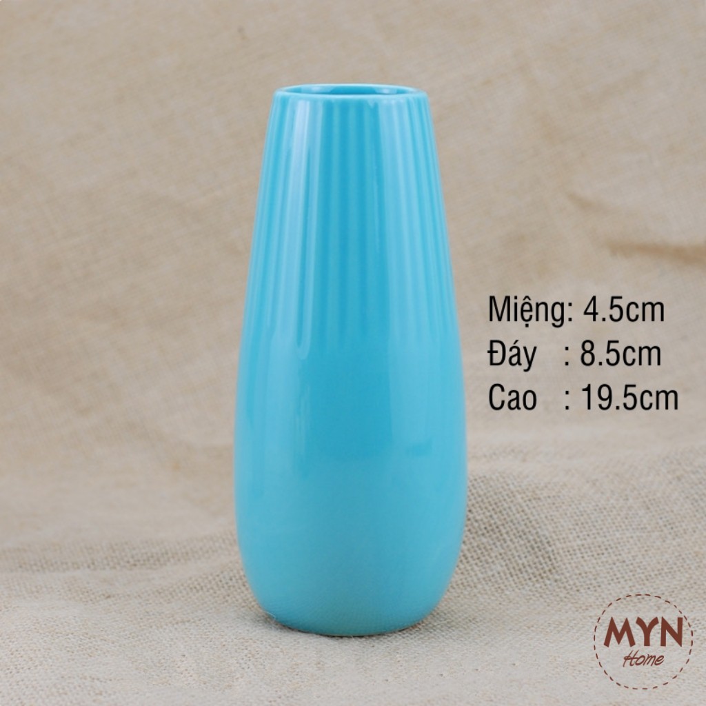 MYN Home Decor - Kho đồ trang trí giá gốcLọ hoa gốm men bóng trang trí nhà cực xinh trắng xanh kt 8.5*19.5cm