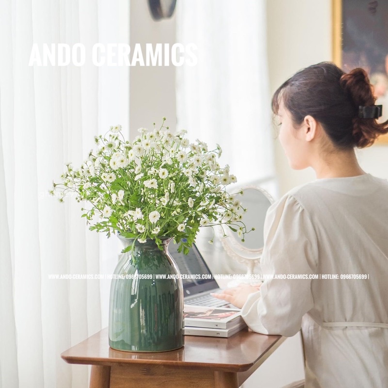 Lọ hoa gốm sứ dáng ống trúc✨ Chất liệu: Gốm sứ