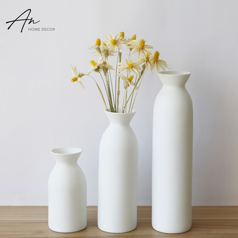 Lọ hoa gốm sứ men mộc phong cách tối giản cao 15/23cm