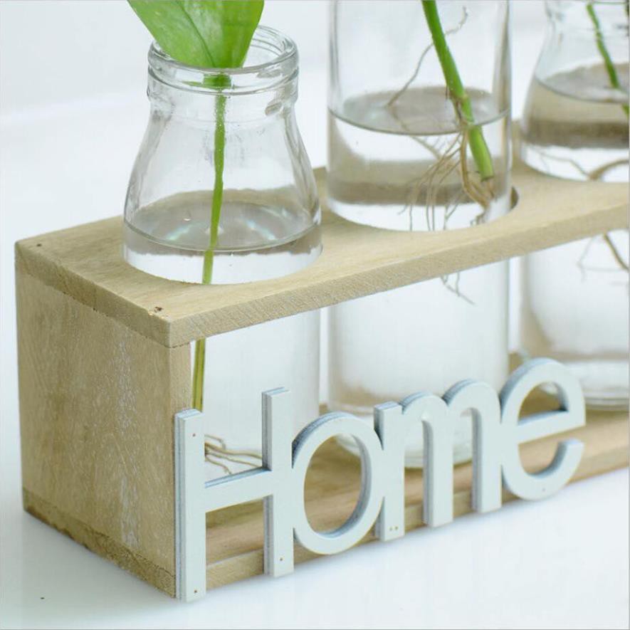 Lọ hoa Home- Set 5 lọ cắm hoa trang trí tặng kèm 1 kệ gỗ Home