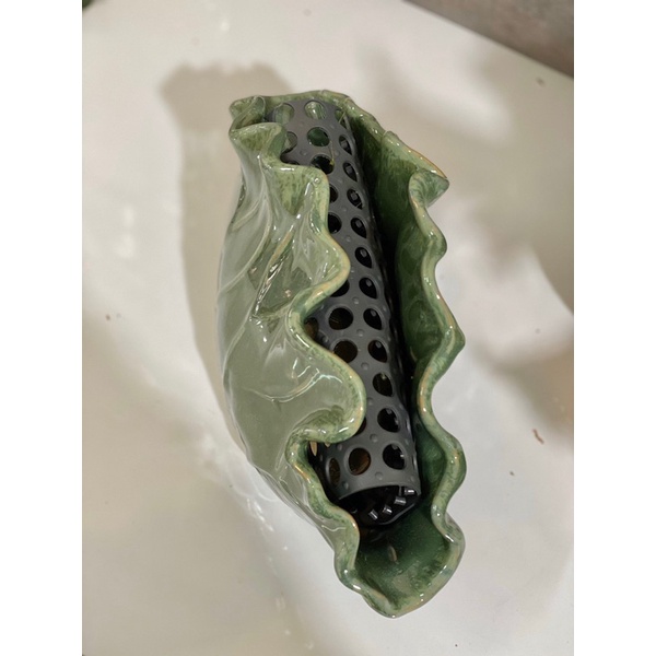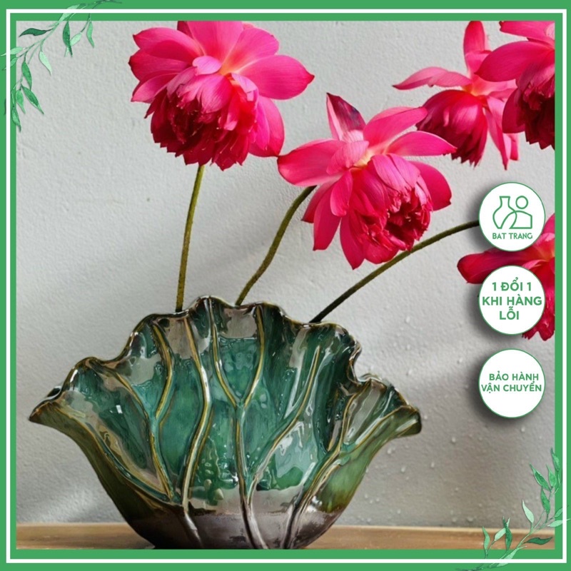 Lọ Hoa Lá Sen Bình Hoa Hình Lá Sen Men Hoả Biến Tặng Kèm Miếng Định Hình Cắm Hoa Gốm Sứ Bát Tràng Cao Cấp