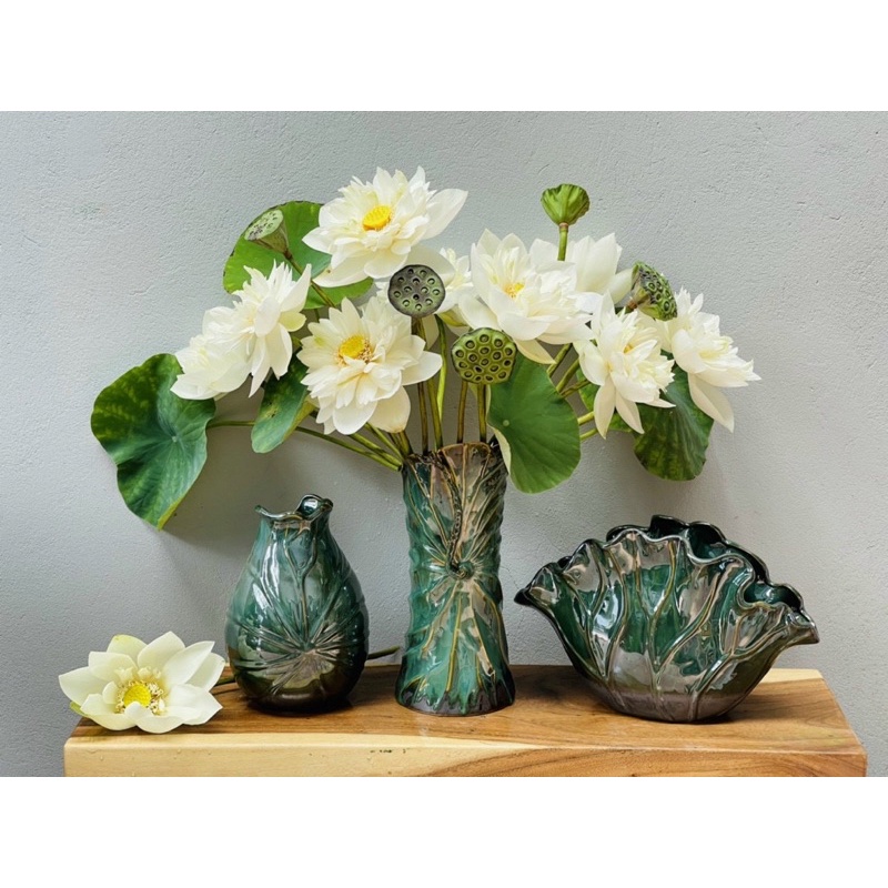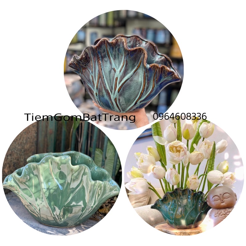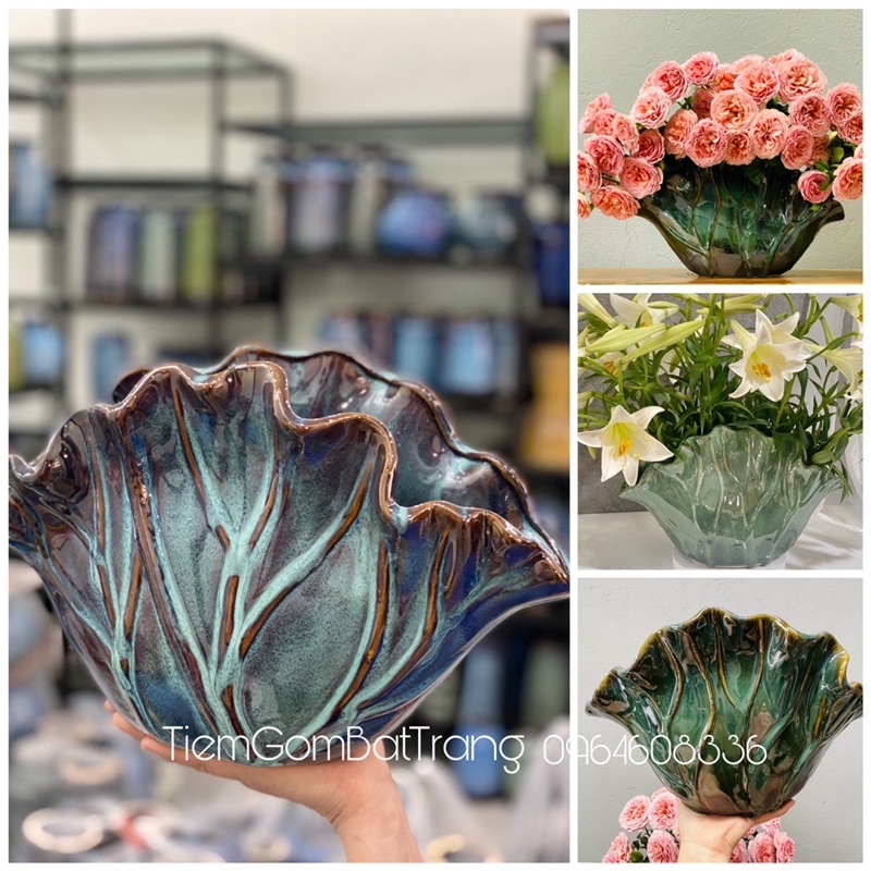 Nhà cửa & Đời sống > Trang trí nhà cửa > Bình trang trí || Lọ Hoa Lá Sen Bình Hoa Hình Lá Sen Men Hoả Biến Tặng Kèm Miếng Định Hình Cắm Hoa Gốm Sứ Bát Tràng Cao CấpCòn hàng