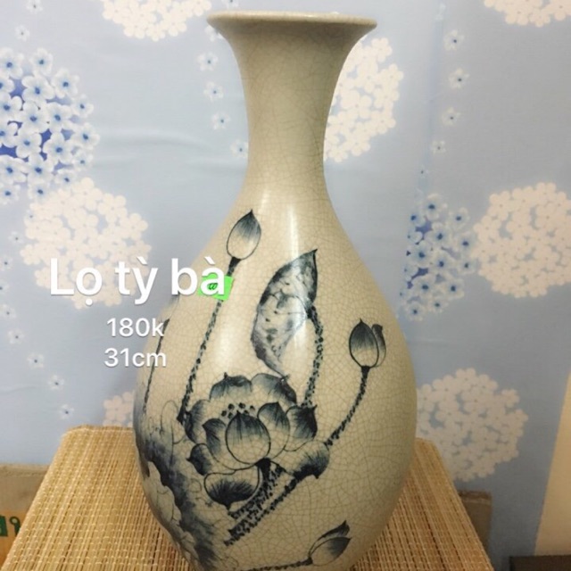 Lọ dáng tì bà men rạn giả cổ vẽ hoa senCao 31cm