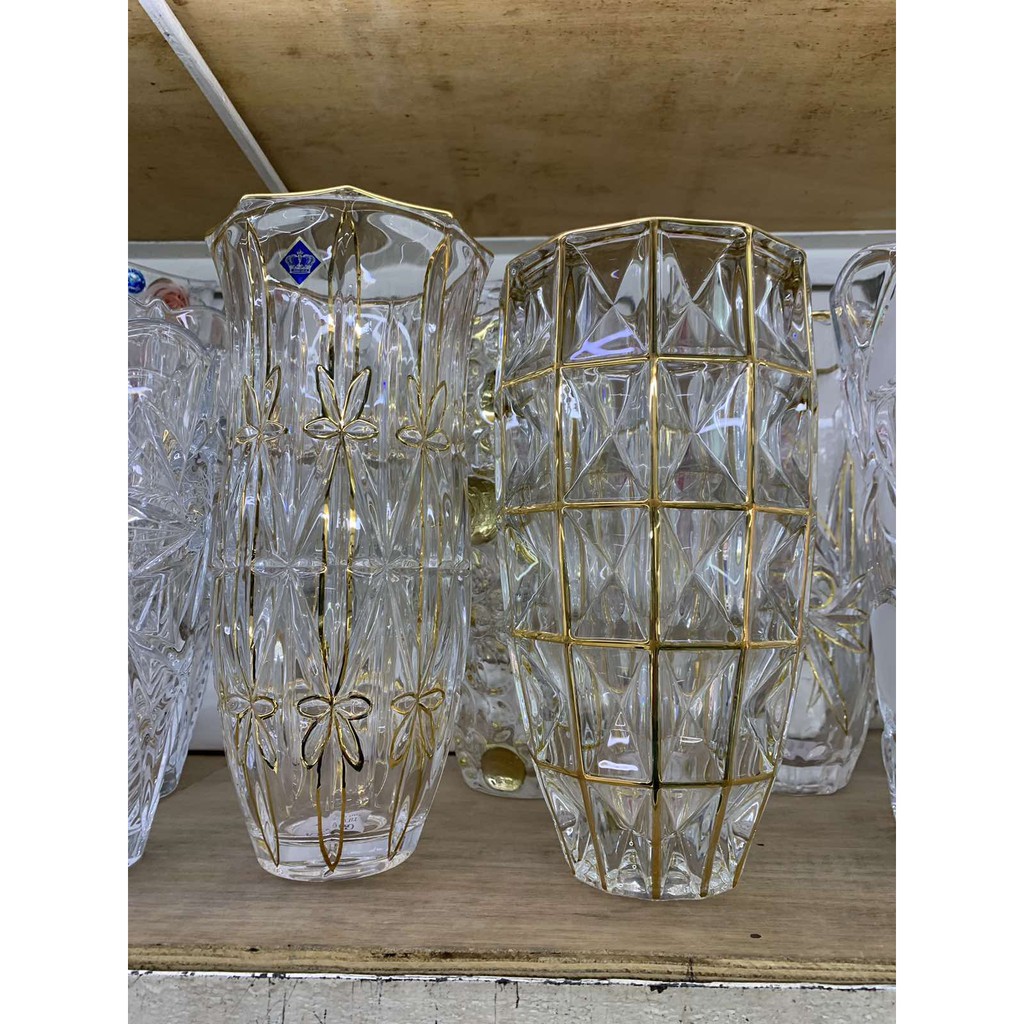 Giới thiệu Lọ hoa Pha lê họa tiết ô vuông hiện đại mạ vàng