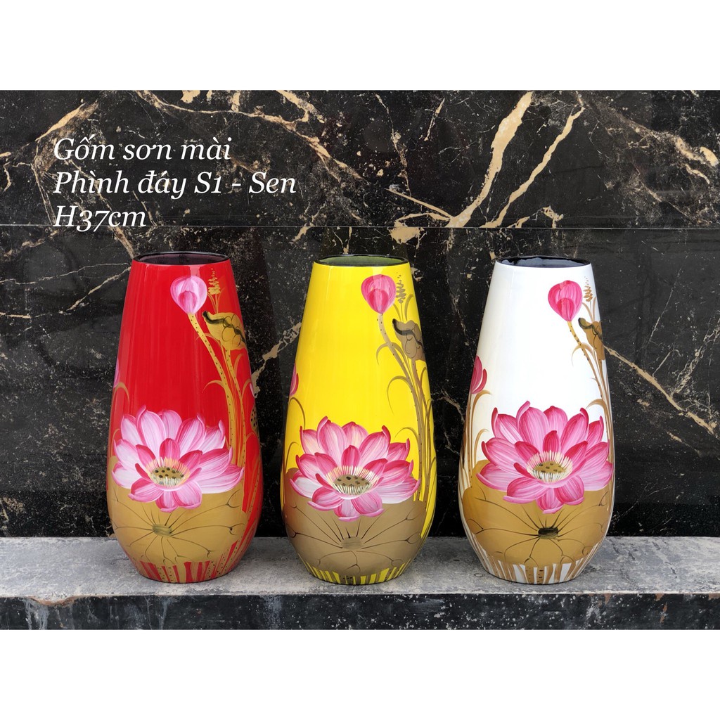 Nhà cửa & Đời sống > Trang trí nhà cửa > Bình trang trí || Lọ hoa sơn mài gốm sứ Bát Tràng dáng phình cao 35cmCòn hàng