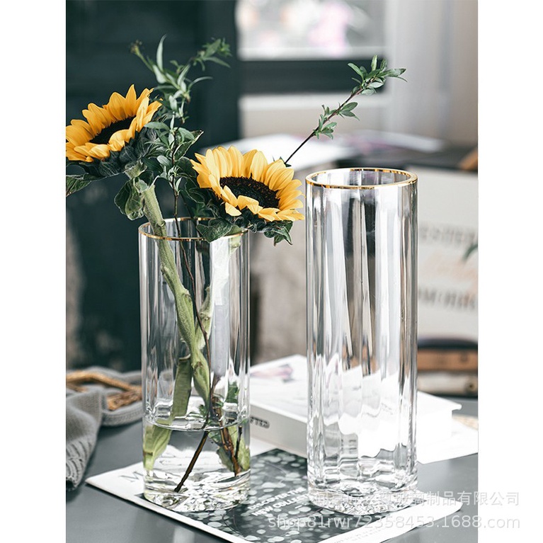 Nhà cửa & Đời sống > Trang trí nhà cửa > Bình trang trí || Lọ hoa thuỷ tinh bình hoa cao cấp trang trí nhà cửa kiểu dáng hình trụ viền miệng vàng - Daisy.decor - Hàng có sẵnCòn hàng