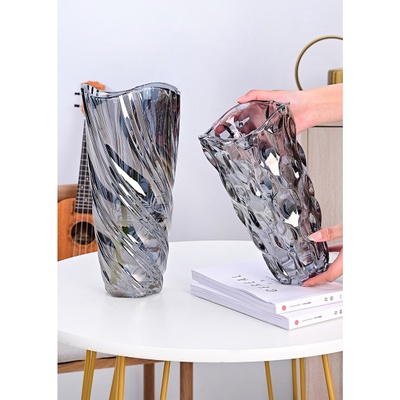 Lọ hoa thủy tinh cao cấp họa tiết vân xoắn kim cương phong cách sang trọng trang trí nhà cửa