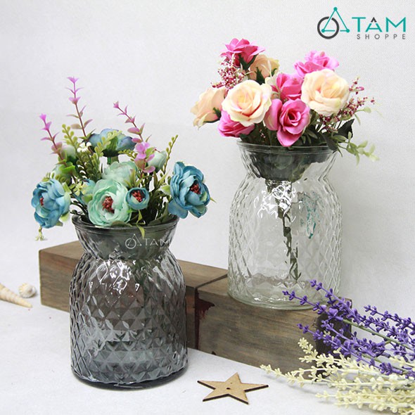 Nhà cửa & Đời sống > Trang trí nhà cửa > Bình trang trí || Lọ hoa thủy tinh trám thoi thắt eo 18cmCòn hàng