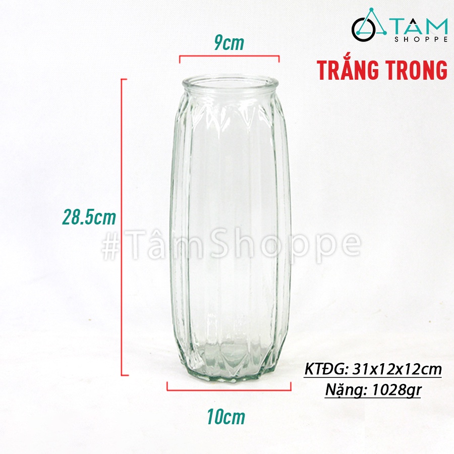 Nhà cửa & Đời sống > Trang trí nhà cửa > Bình trang trí || Lọ hoa thủy tinh trong suốt khía lá dứa nhiều màu LHTT-65Còn hàng
