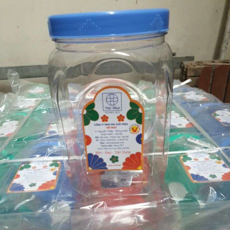 Lọ Nhựa vuông việt nhật loại đựng 2kgchiều cao lọ 18cm