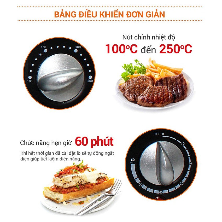 - Lò có mức điều chỉnh nhiệt độ từ 100 độ C đến 250 độ C để người dùng điều chỉnh tùy theo mục đích sử dụng.