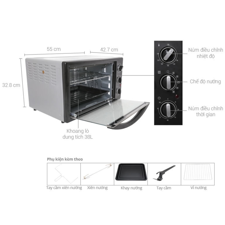 Tiện ích:Quạt đối lưu, Có hẹn giờ nấu xong