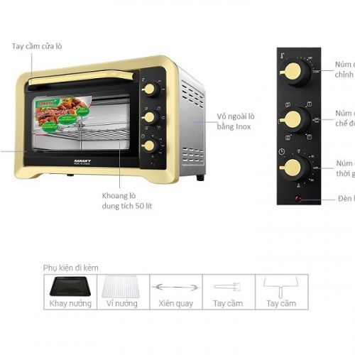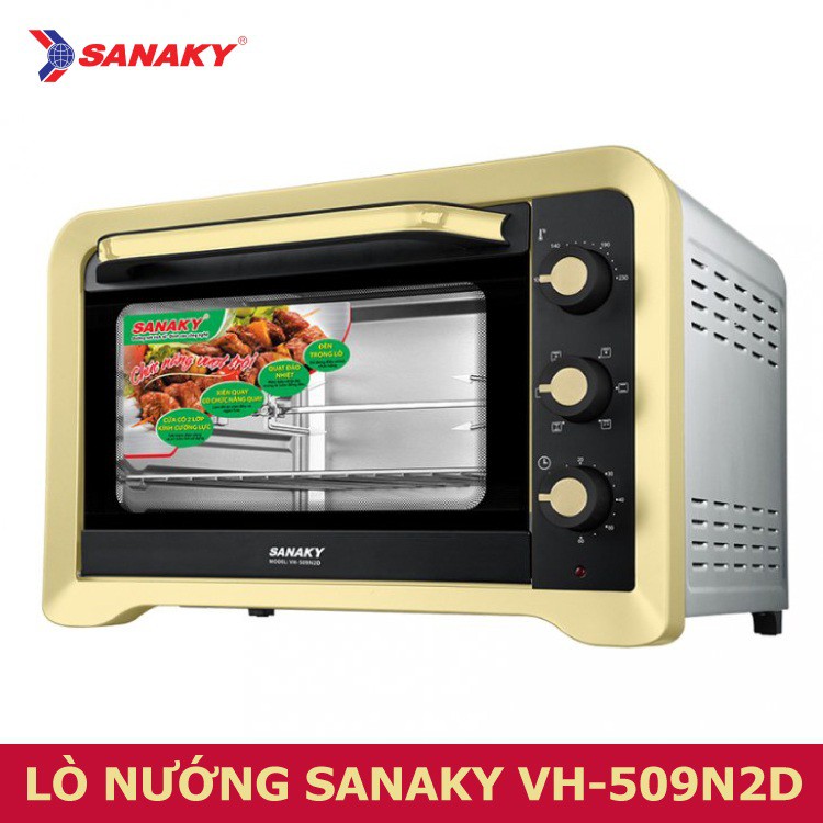 - Lò Nướng Sanaky VH-509N2D với dung tích 50L có thể dùng như lò nướng thịt cho cả gia đình bạn, với dung tích này rất phổ thông nên chúng ta có thể chọn mua cho gia đình hoặc hàng quán, đặc biệt nhu cầu và đam mê học làm bánh của chị em.