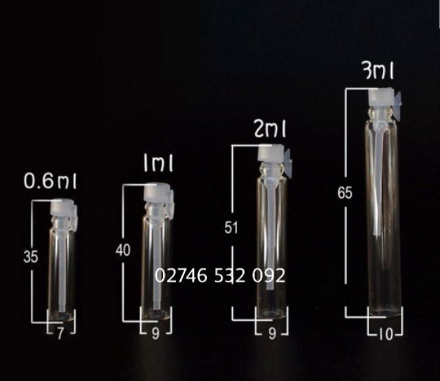 Lọ Thủy Tinh 2ml Đựng Mẫu Thử Nước Hoa Nắp Trắng Nhỏ XinhKích thước: