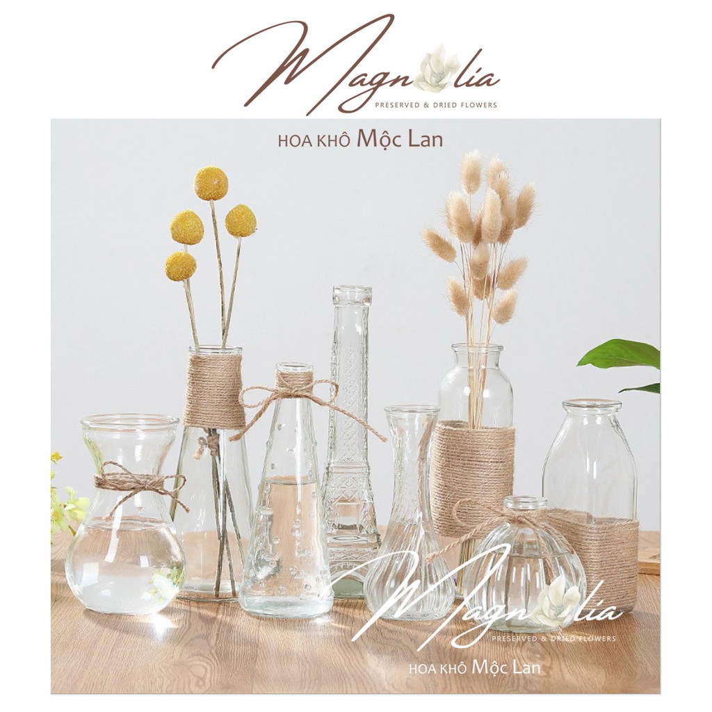 Lọ thủy tinh trang trí dây thừng cắm hoa phong cách Bắc Âu vintageLọ thủy tinh này tớ mua lẻ về tự quấn dây trang trí cho các cậu. Tớ ko sỉ chai lọ như các shop sỉ thủy tinh ạ! Nên mặt hàng này tính ra tớ mua hộ khách để cắm hoa chứ ko kinh doanh về thủy tinh T o T