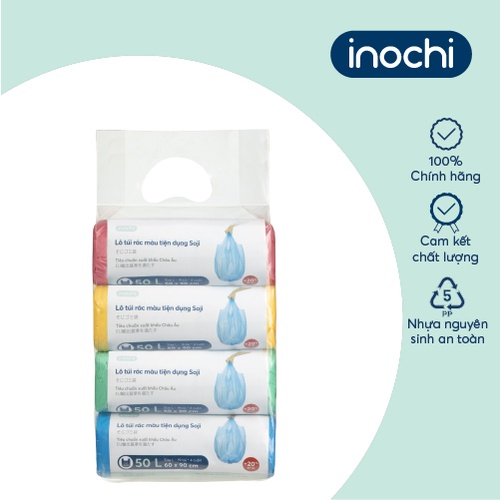 Nhà cửa & Đời sống > Dụng cụ chăm sóc nhà cửa > Túi nilon & túi rác || Lô túi rác màu tiện dụng Inochi - Soji 4 x 50L có quai cầm (4 cuộn)Còn hàng