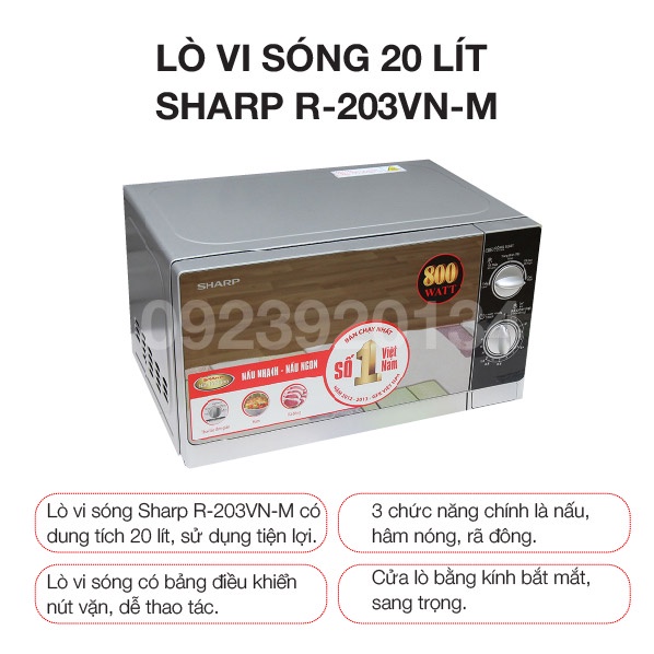 Giới thiệu [Mã ELHADEV giảm 4% đơn 300K] Lò vi sóng 20 lít Sharp R-203VN-M