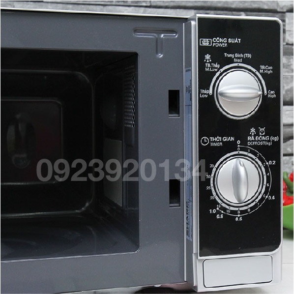 Lò vi sóng có bảng điều khiển nút vặn, hướng dẫn tiếng Việt dễ thao tác.