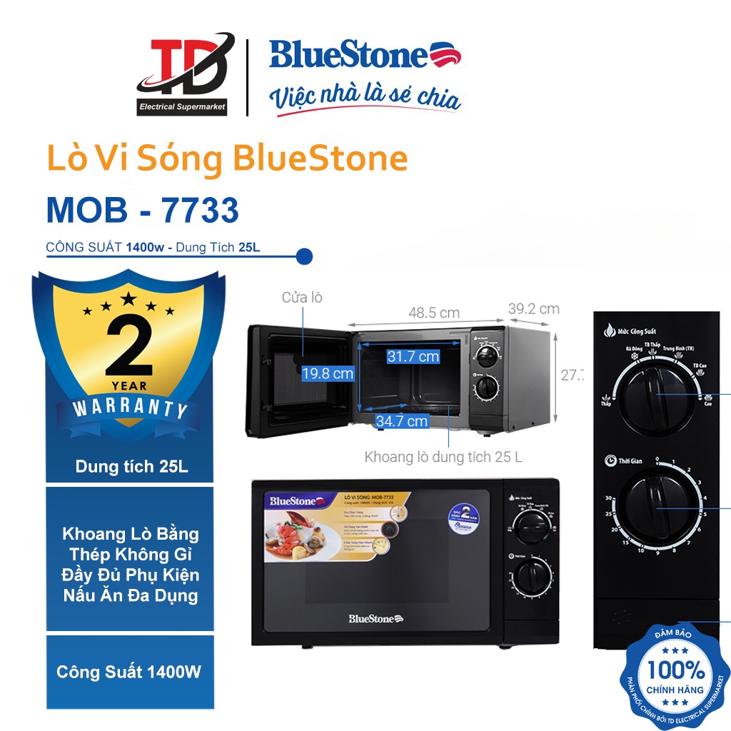 Lò vi sóng Bluestone MOB-7733Thông số kỹ thuật Lò vi sóng Bluestone MOB-7733 25 lít