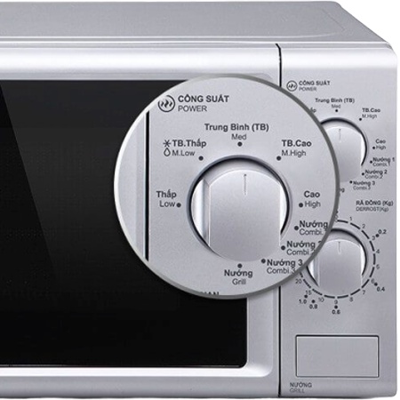 Lò vi sóng có chức năng nướng. Người dùng nấu ăn đa dạng, tiết kiệm thời gian, công sức hiệu quả với lò vi sóng có 4 chức năng chính là hâm nóng, nấu, rã đông, nướng, được thiết lập 5 mức tùy chỉnh công suất linh hoạt, công suất vi sóng tối đa 800 W, công suất nướng 1000 W.