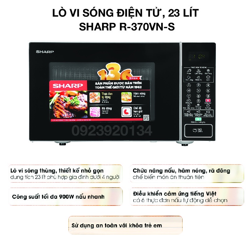 Giới thiệu Lò vi sóng Điện tử, 23 lít Sharp R-370VN-S