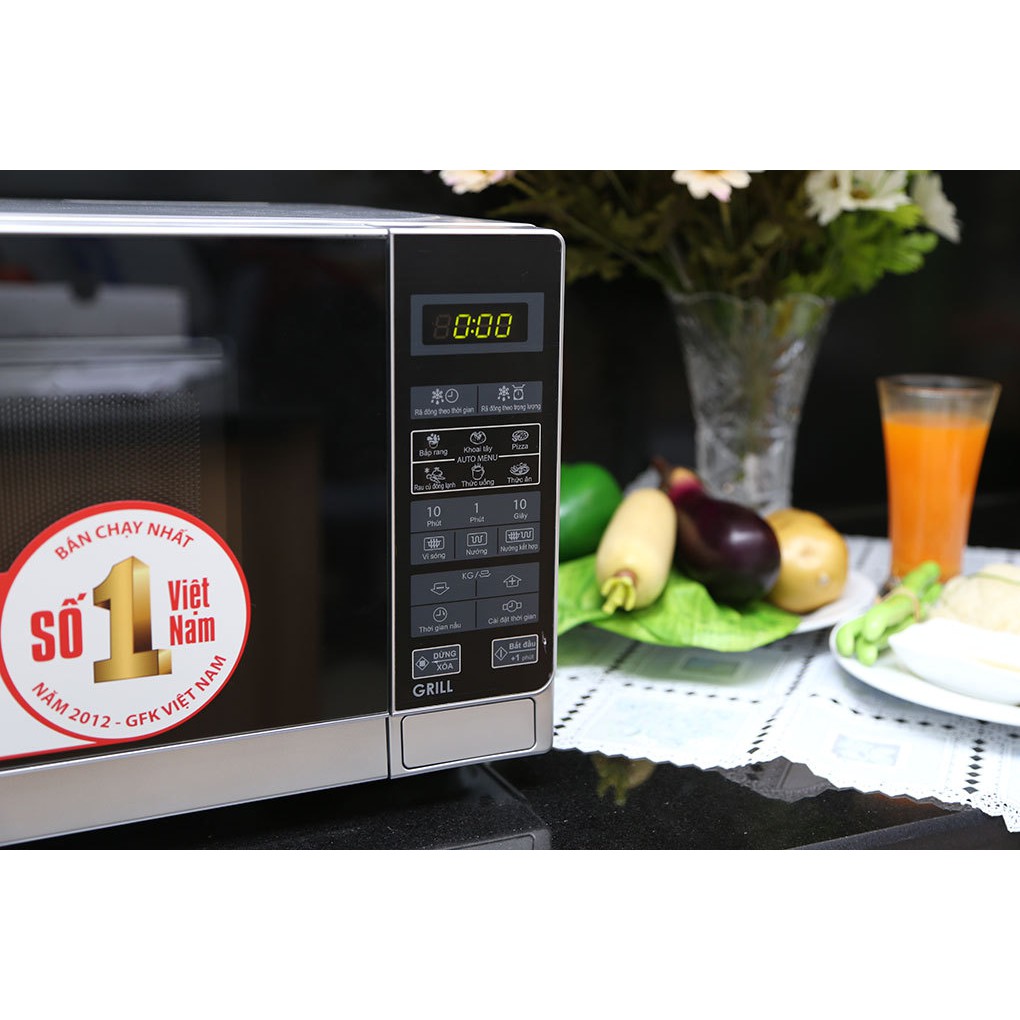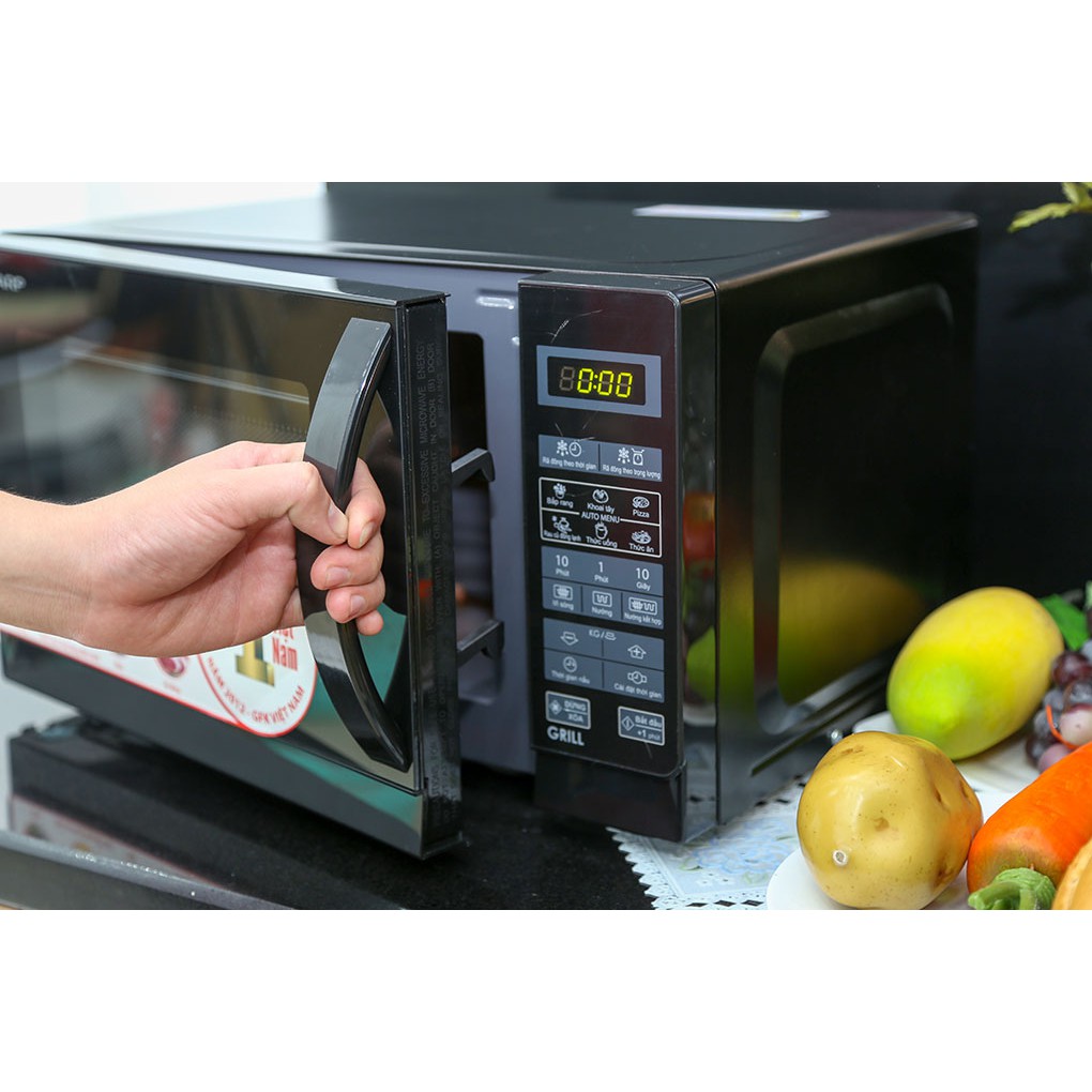 - Lò vi sóng Sharp điện tử có nướng Sharp có các chức năng chính là rã đông, hâm nóng, nấu vi sóng, nướng và nấu nướng kết hợp.