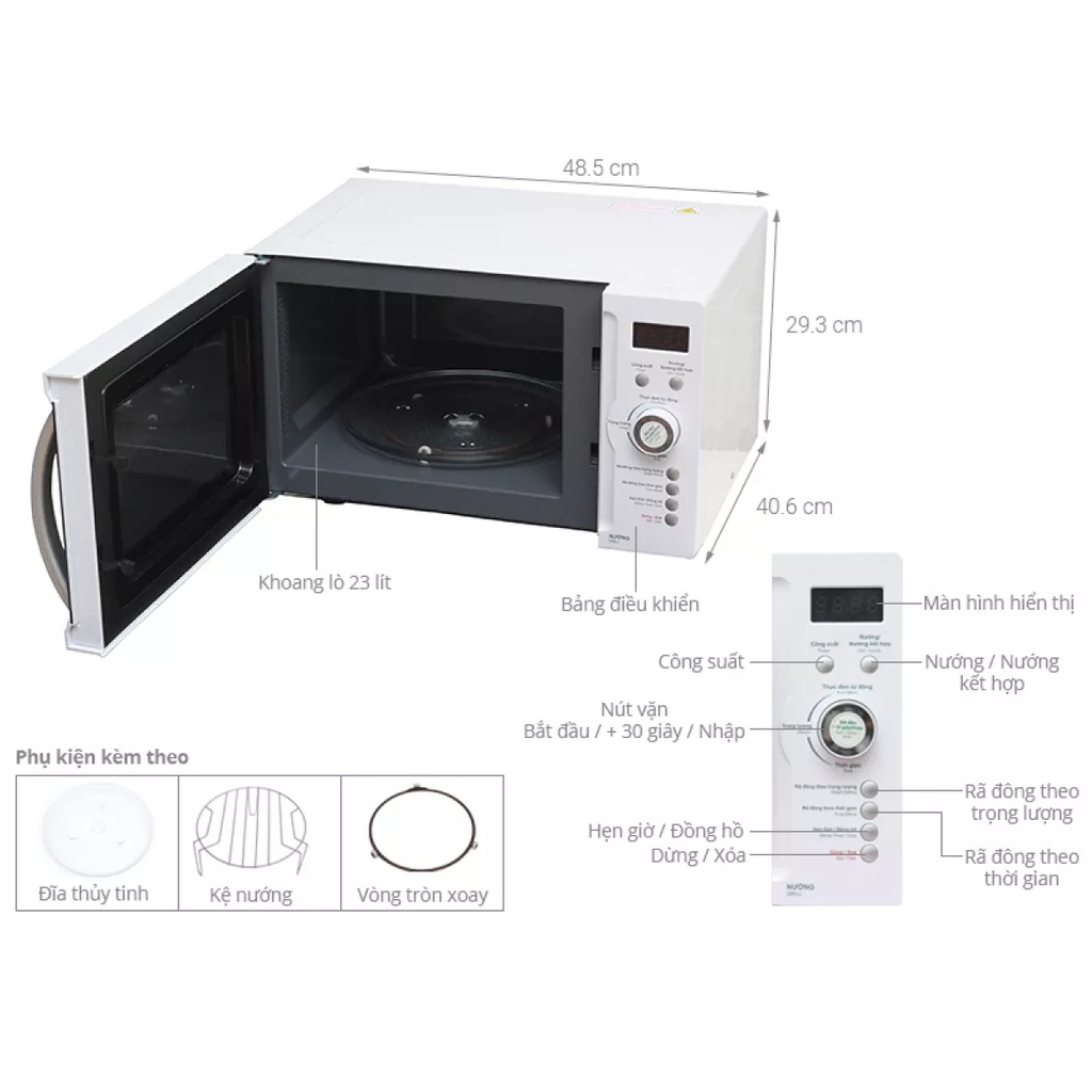 - Chức năng chính: Rã đông, hâm, nấu, nướng