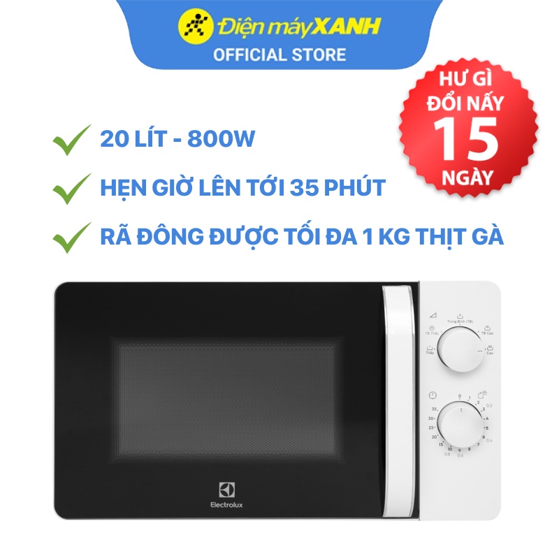 Thiết Bị Điện Gia Dụng > Đồ gia dụng nhà bếp > Lò vi sóng || [Mã ELMALL150 giảm 8% đơn 500K] Lò vi sóng Electrolux EMM20K18GW 20 lít 800 W - Chính hãng BH 2 nămCòn hàng