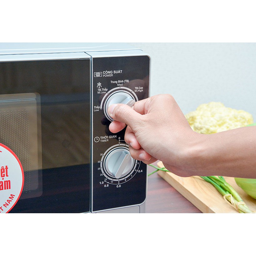 Nút điều khiển cơ kiểu vặn đơn giản, dễ sử dụng: Lò vi sóng Sharp R-205VN(S), Dung tích 20 Lít, Công suất 800W với 3 chức năng Nấu, Hâm và Rã đông thực phẩm Là loại lò vi sóng có nút điều chỉnh bằng cơ học bằng cách người dùng xoay nút điều chỉnh để chọn các chế độ hâm nóng, nấu, rã đông, nướng thức ăn và thời gian, Có hiển thị hướng dẫn bằng tiếng Việt, Sản phẩm được thiết kế đơn giản, dễ sử dụng