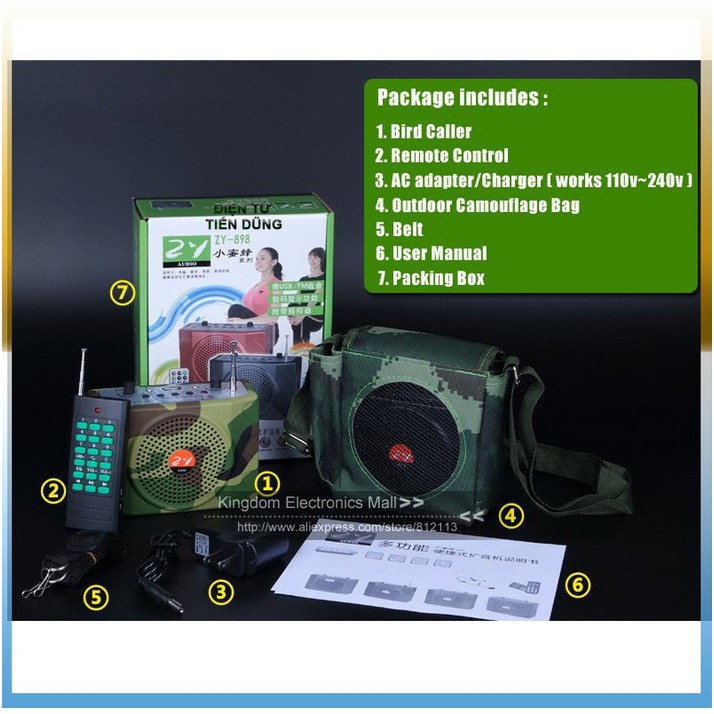 LOA BẪY CHIM ZY898 MÁY ĐÁNH CHIM LOA TRỢ GIẢNG điều khiển 1000m - Tặng Kèm Thẻ Nhớ Có Sẵn Tiếng Chim Bẫy Chuẩn