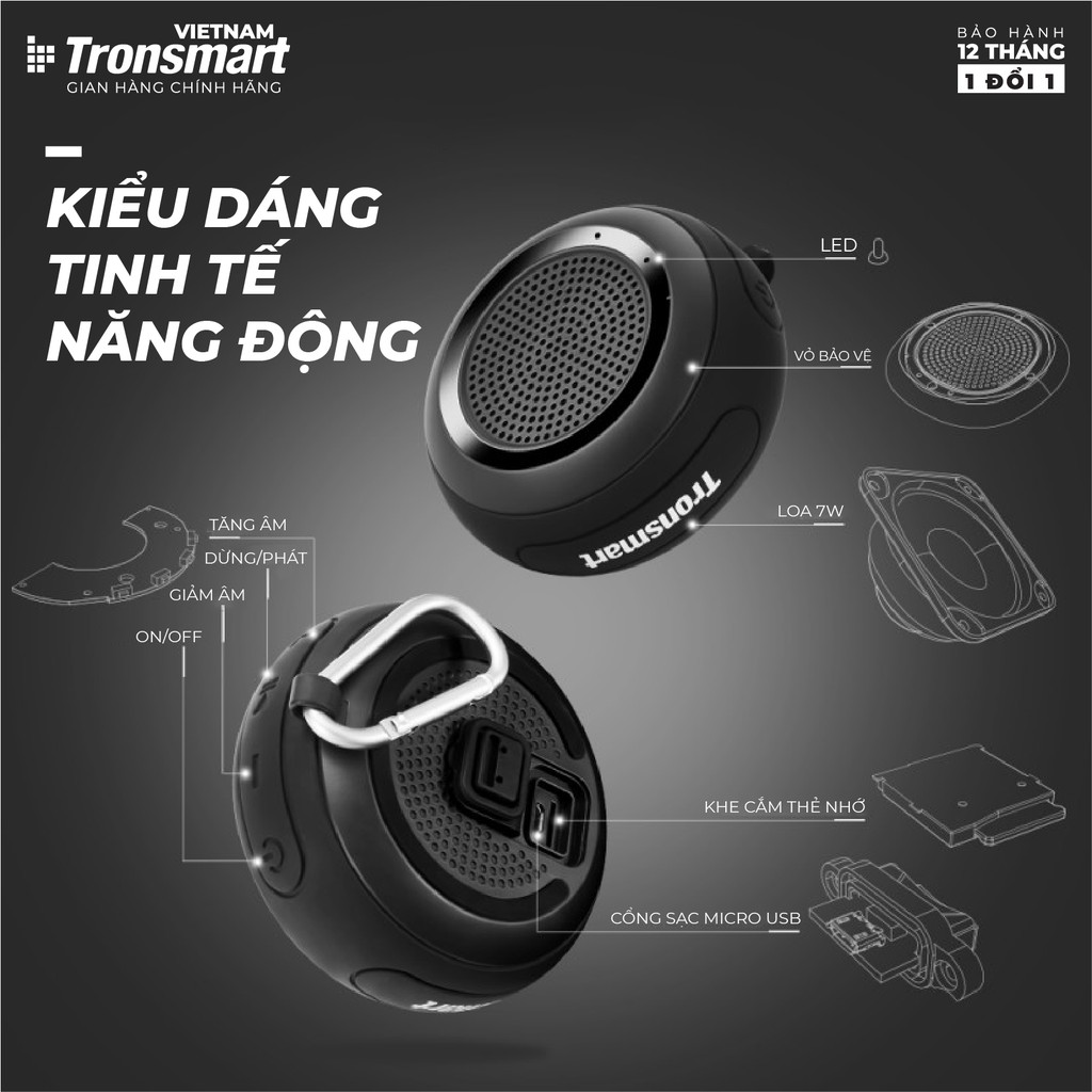 Thiết Bị Âm Thanh > Dàn âm thanh > Loa || Loa Bluetooth 4.2 Tronsmart Element Splash TM-24477 -Âm thanh vòm 360 Công suất 7W - Hàng chính hãng - Bảo hành 12 thángCòn hàng